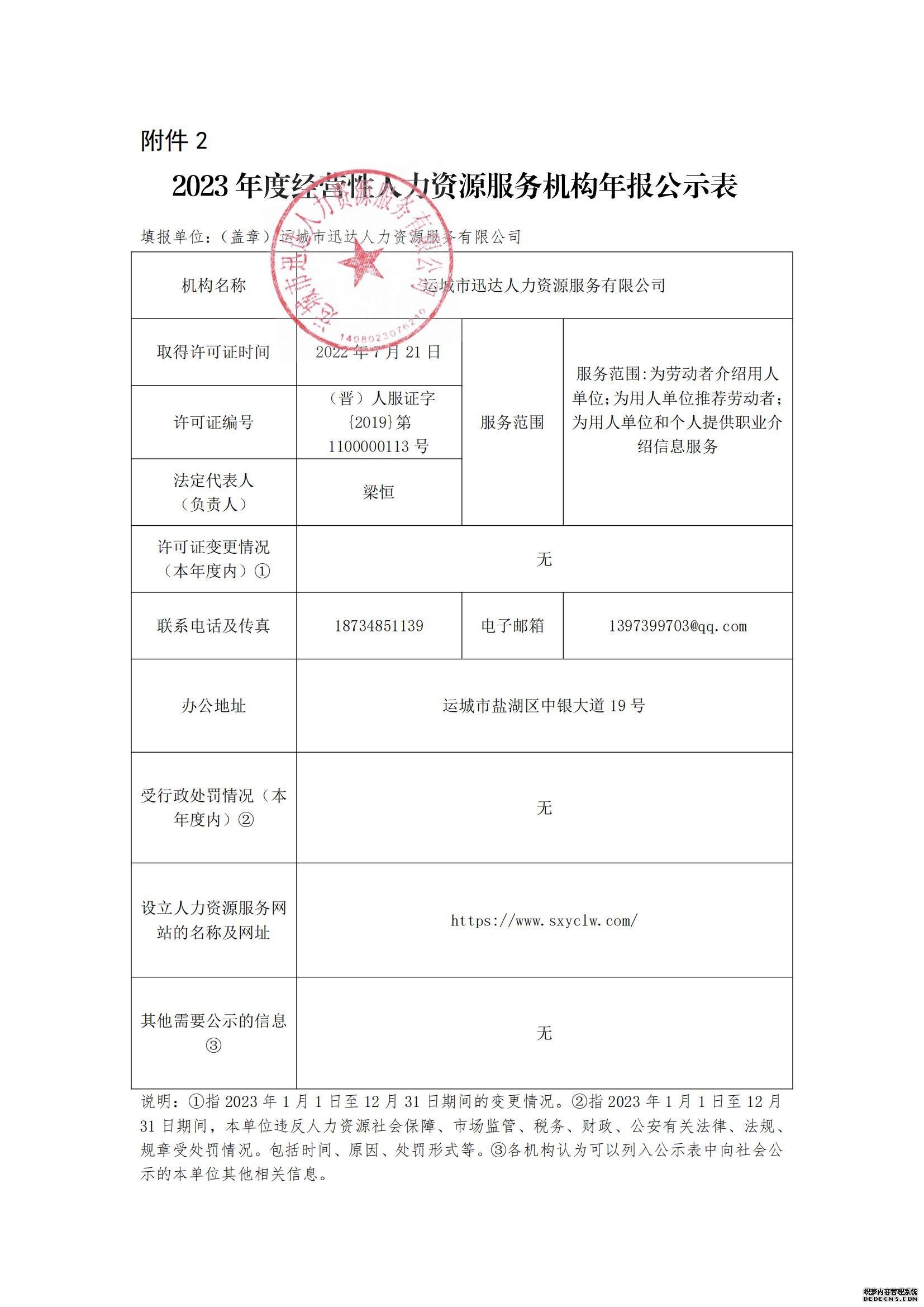 2023 年度經(jīng)營性人力資源服務(wù)機(jī)構(gòu)年報公示