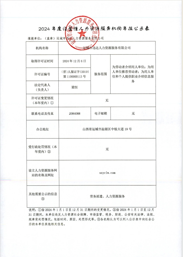 2024年度經(jīng)營(yíng)性人力資源服務(wù)機(jī)構(gòu)年報(bào)公示表